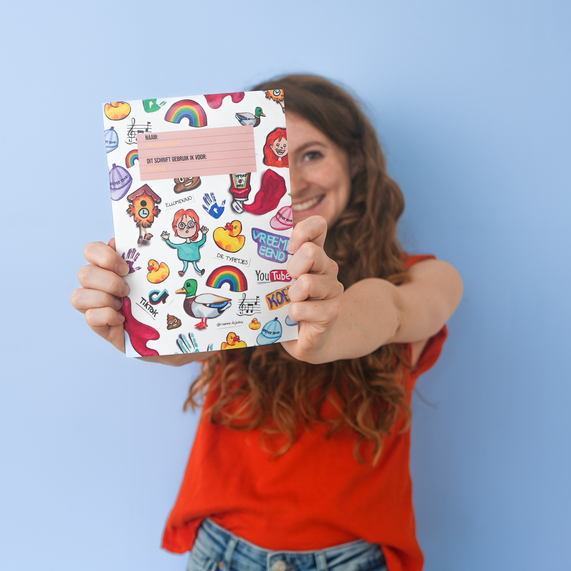 Schrijven, tekenen of krabbelen – dit notitieboekje maakt alles vrolijker! De cover staat vol met vrolijke tekeningen van Lisanne, herkenbaar en helemaal in haar stijl. Perfect om elke dag met een glimlach open te slaan